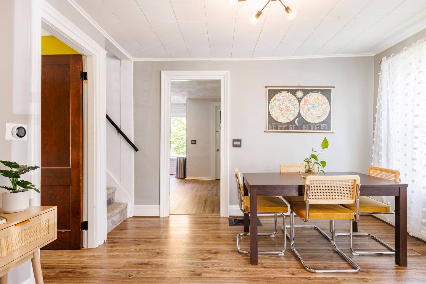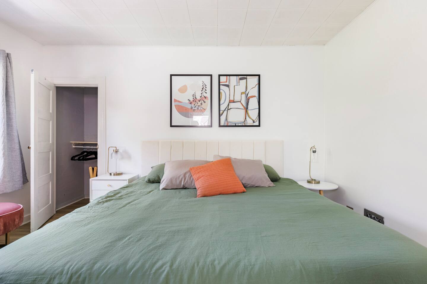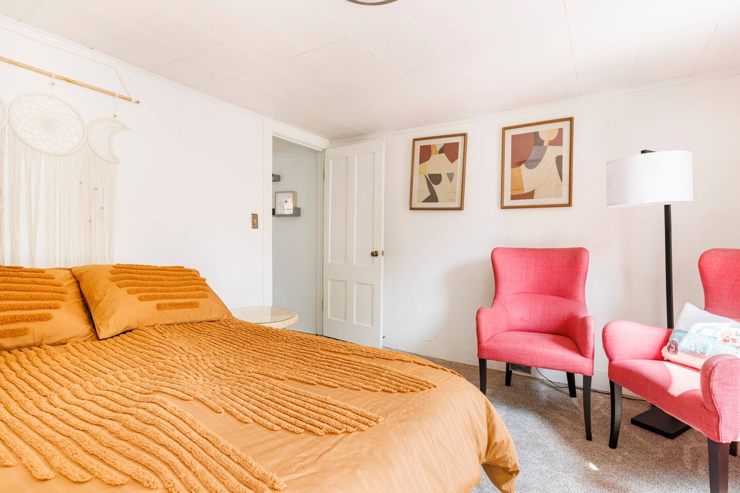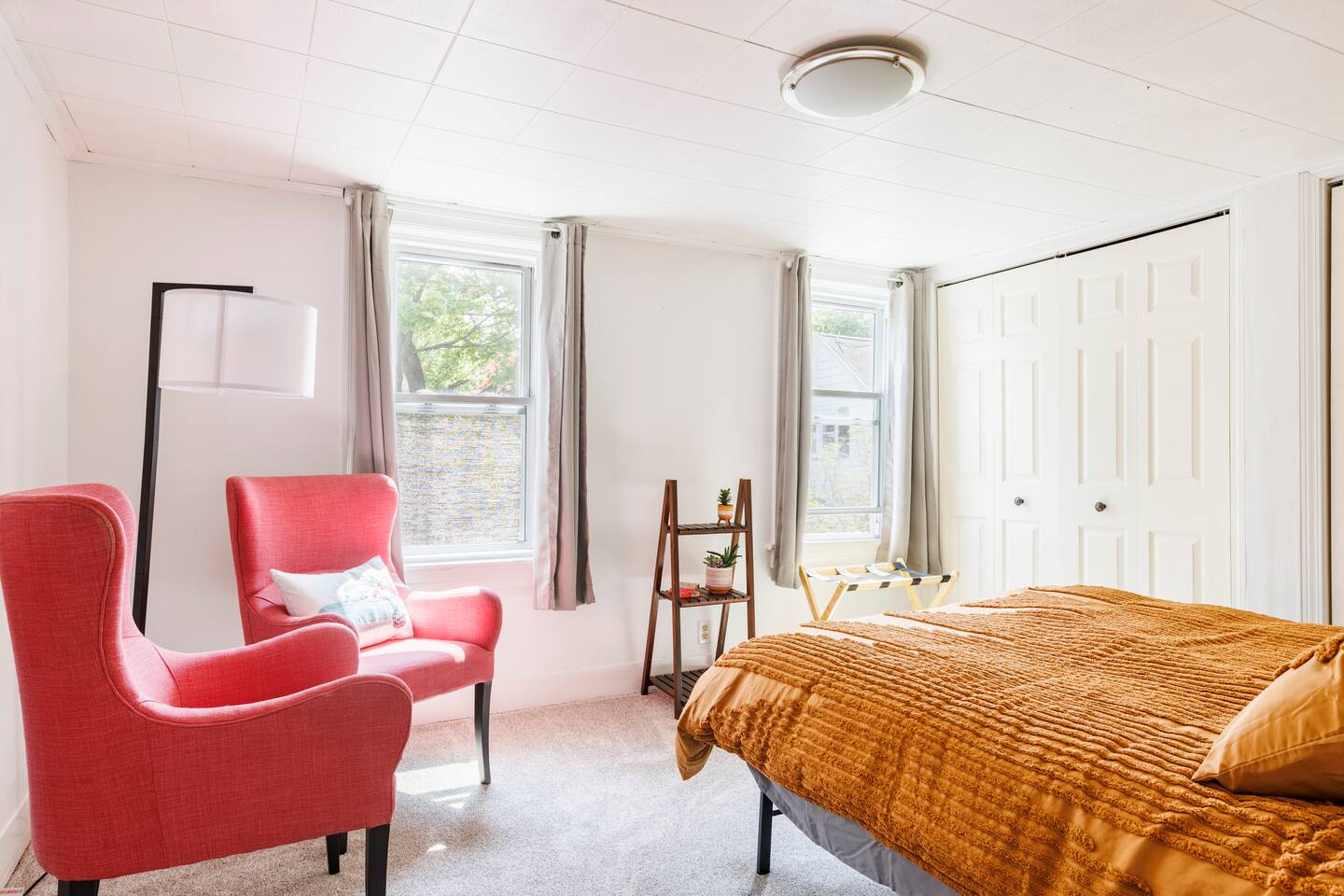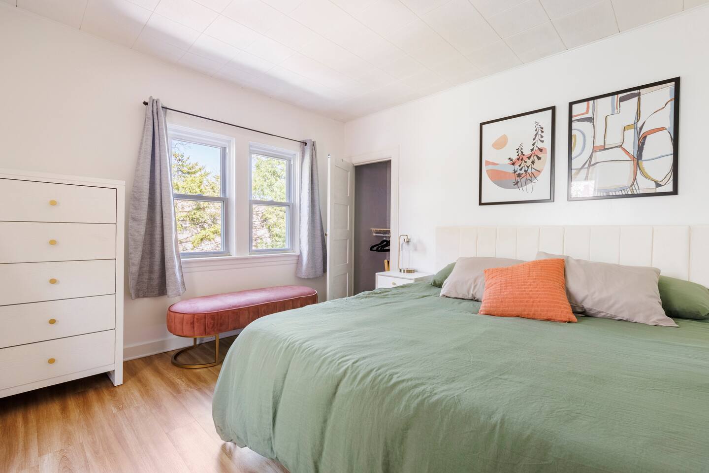 KEY FEATURES ☀ Spacious 1696 sq ft 3 Bedroom home with first floor Full bed and second floor King & Queen beds ☀ 2 full bathrooms - 1 upstairs and 1 downstairs ☀ OFF STREET PARKING - 2 spots back to back in the driveway ☀ Full kitchen, with all the tools needed to make a delicious meal! (dishwasher is available for guest use) ☀ Stocked coffee bar with coffee grounds, K-cups and creamer ☀ Salt, pepper, and various spices are provided ☀ 55” flat screen TV with access to all streaming platforms (logins not provided) ☀ Free High Speed WiFi ☀ Washer + dryer located on first floor for guest use ☀ Easy keypad access into home ☀ Dedicated Workspace area for those needing to work remotely ☀ Small private backyard with grill, propane firepit, and outdoor furniture set ☀ Very Convenient location; Walkable to charming Park Ave; short drive to Universities, Hospitals, Restaurants and Stores ☀ Old 1800s home with character and quirks ☆☆ BEDROOMS & LIVING AREA ☆☆ Ultimate comfort and relaxation awaits you on our King/Queen/Full Memory Foam mattresses. MCM/Boho Living Room contains fire place and 55" Smart TV to watch all of your favorite shows on. Netflix, Hulu, Disney+, Apple TV are all available for your use, but you will need to provide your own login. Stairs to upstairs bedrooms and landing are steep, recommended to use banister for guest safety. ☆☆ BATHROOMS ☆☆ There are two full size bathrooms complete with plush bath linens, hairdryer and first aid kit. 1 first floor bathroom located off the kitchen and 1 second floor bathroom. ☆☆ KITCHEN & DINING ROOM ☆☆ The fully equipped kitchen has everything you’ll need for whipping up tasty meals for the whole group, including stainless steel appliances, a toaster, a Keurig, Coffee pot and all the basic kitchen essentials like pots, pans, plates, cups, and utensils. Enjoy meals together at the kitchen table with seating for 6. Dishwasher is available - few pods will be provided. There is a stocked coffee bar with assorted coffee grounds/K-cups and creamer. Salt, pepper, and various spices are also included! ☆☆ LAUNDRY ROOM ☆☆ Full size washer and dryer located off of the kitchen. Iron and ironing board available. Few pods will be provided for guest use ☆☆ OUTSIDE SPACE ☆☆ Step out back into your quiet and private oasis - steps away from the bustling Park Ave area. The backyard features a propane fire pit, comfortable outdoor patio set along with a gas grill ideal for backyard bbqs. ★☆ Book Today & Let Us Take Care Of You In ROCHESTER NY! ☆★