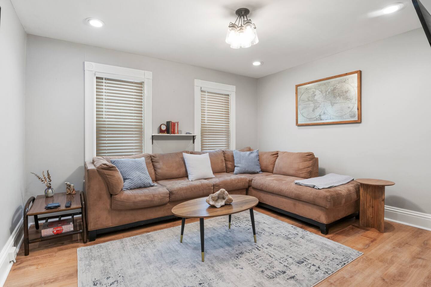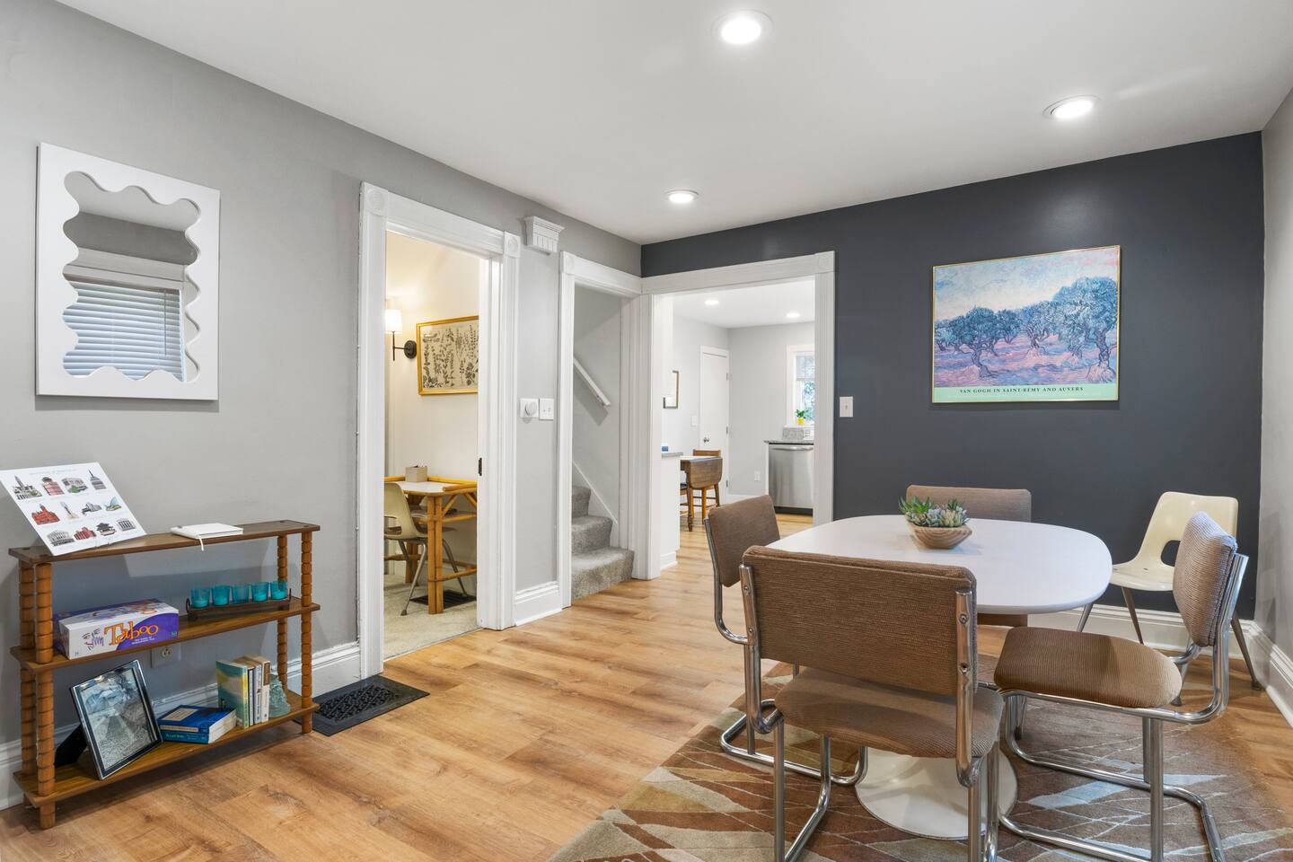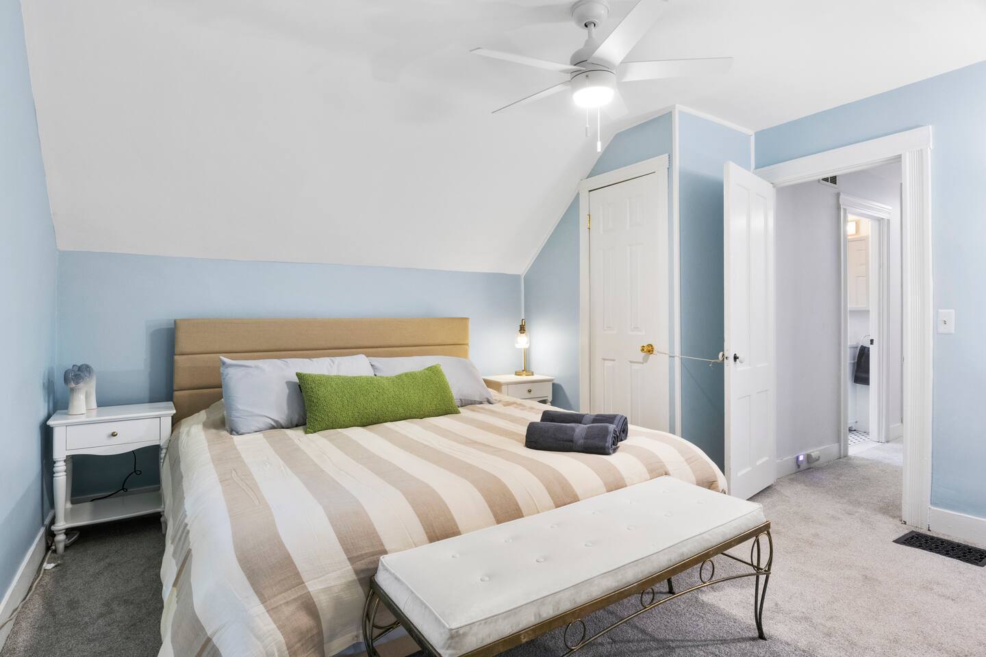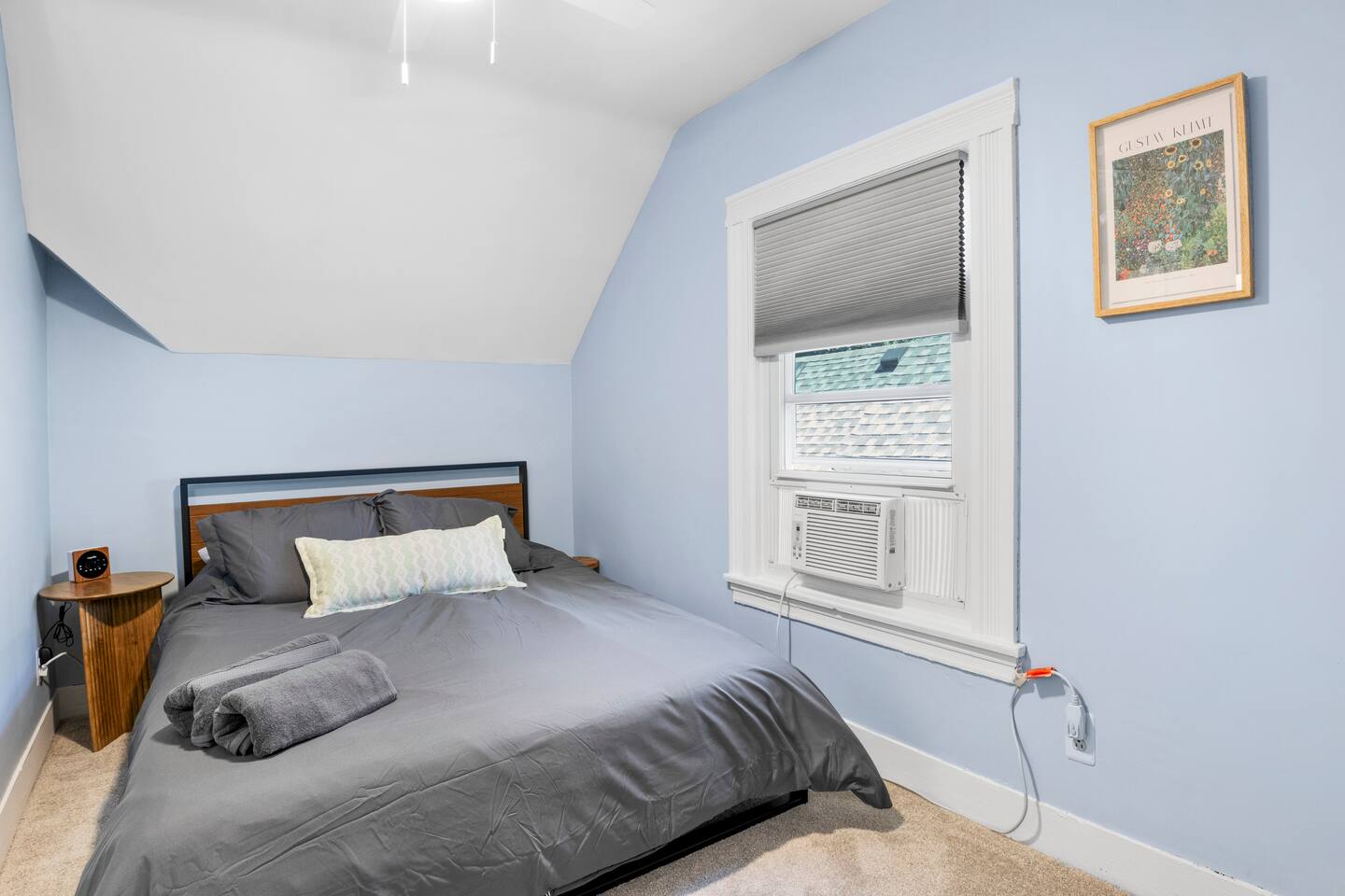 KEY FEATURES ☀ Spacious 1696 sq ft 3 Bedroom home with first floor Full bed and second floor King & Queen beds ☀ 1.5 bathrooms - 1 full upstairs and 1/2 bath downstairs ☀ OFF STREET PARKING - 3 spots back to back in the driveway with the gate open ☀ Full kitchen, with all the tools needed to make a delicious meal! (dishwasher is available for guest use) ☀ Stocked coffee bar with coffee grounds, K-cups and creamer ☀ Salt, pepper, and various spices are provided ☀ 55” flat screen TV with access to all streaming platforms (logins not provided) ☀ Free High Speed WiFi ☀ Washer + dryer located in basement for guest use ☀ Easy keypad access into home ☀ Dedicated Workspace area for those needing to work remotely ☀ Small private backyard chiminea firepit, and outdoor furniture set ☀ Very Convenient location; Walkable to charming Park Ave; short drive to universities, museums, hospitals, restaurants and stores ☀ 1800s home with character and quirks ☆☆ BEDROOMS & LIVING AREA ☆☆ Ultimate comfort and relaxation awaits you on our King/Queen/Full Memory Foam mattresses. MCM Living Room contains large sectional and 55" Smart TV to watch all of your favorite shows on. Netflix, Hulu, Disney+, Apple TV are all available for your use, but you will need to provide your own login. Stairs to upstairs bedrooms and landing are steep, recommended to use banister for guest safety. ☆☆ BATHROOMS ☆☆ One full size and one half bath complete with plush bath linens, hairdryer and first aid kit. 1 first floor half bathroom located off the kitchen and 1 full second floor bathroom. ☆☆ KITCHEN & DINING ROOM ☆☆ The fully equipped kitchen has everything you’ll need for whipping up tasty meals for the whole group, including stainless steel appliances, a toaster, a Keurig, Coffee pot and all the basic kitchen essentials like pots, pans, plates, cups, and utensils. Enjoy meals together at the kitchen table with seating for 6. Dishwasher is available - few pods will be provided. There is a stocked coffee bar with assorted coffee grounds/K-cups and creamer. Salt, pepper, and various spices are also included! ☆☆ LAUNDRY ROOM ☆☆ Full size washer and dryer located in the basement. Iron and steamer available in bedroom closet. Detergent will be provided for guest use near units ☆☆ OUTSIDE SPACE ☆☆ Step out back into your quiet and private oasis - steps away from the bustling Park Ave area. The backyard features a chiminea fire pit, comfortable outdoor patio set. ★☆ Book Today & Let Us Take Care Of You In ROCHESTER NY! ☆★